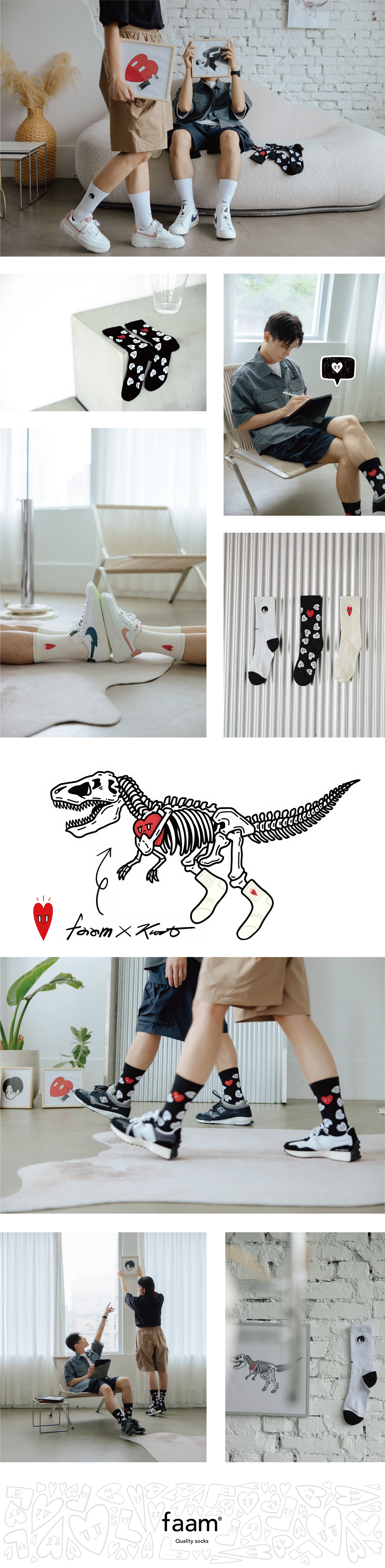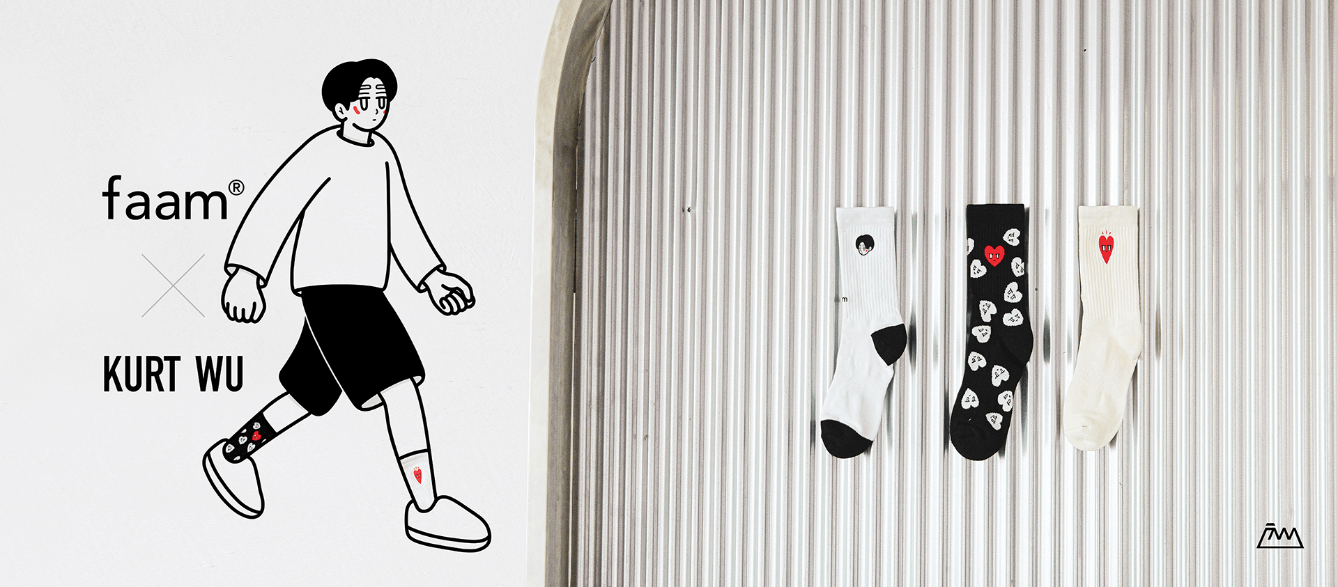 本次與Kurt Wu攜手推出三款襪品,並將經典的中分男子、愛心巧妙融入織襪之中。